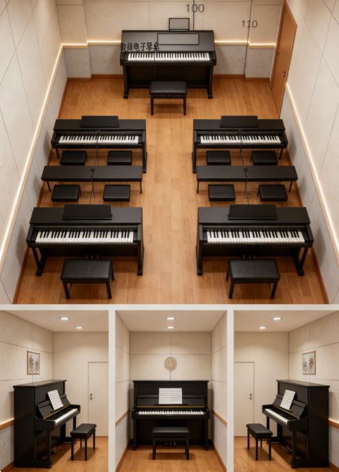 4. 功能标准:适配学生练琴需求,声学效果良好,钢琴摆放合理,活动空间充足,配套设施齐全。